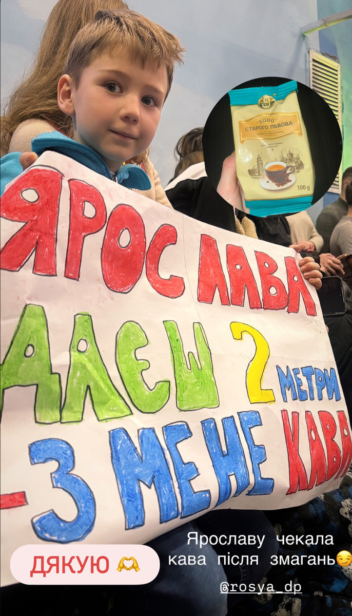Но не только спортивное достижение привлекло внимание фанатов. На трибунах Ярославу поддерживал маленький болельщик с плакатом: