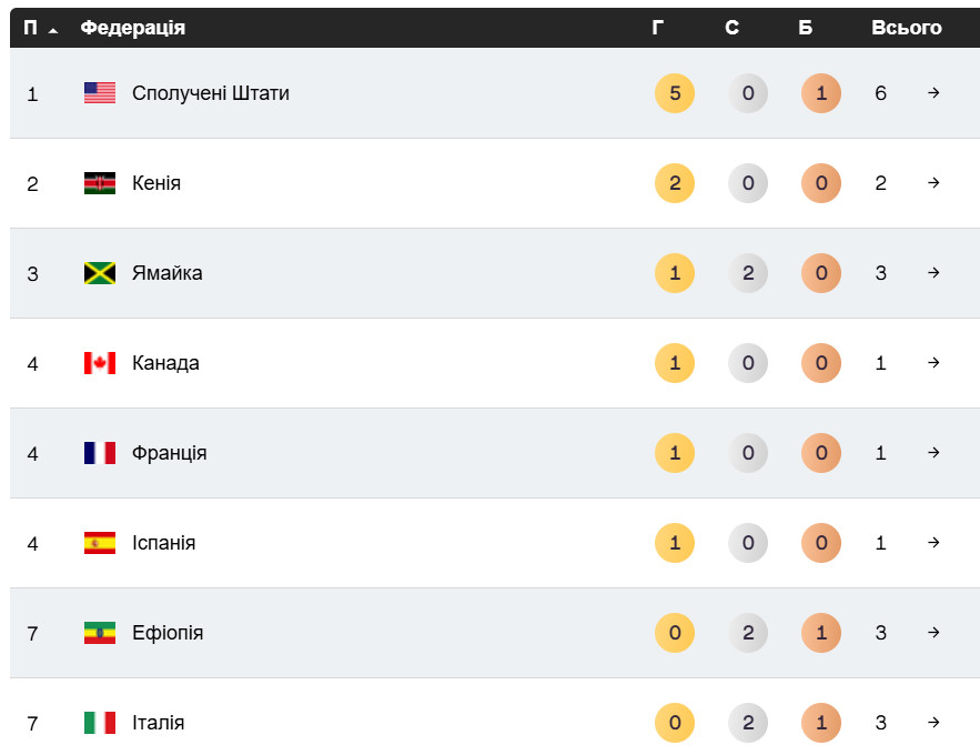 США уходит в отрыв, Кения удерживает второе место: медальный зачет чемпионата мира 2025