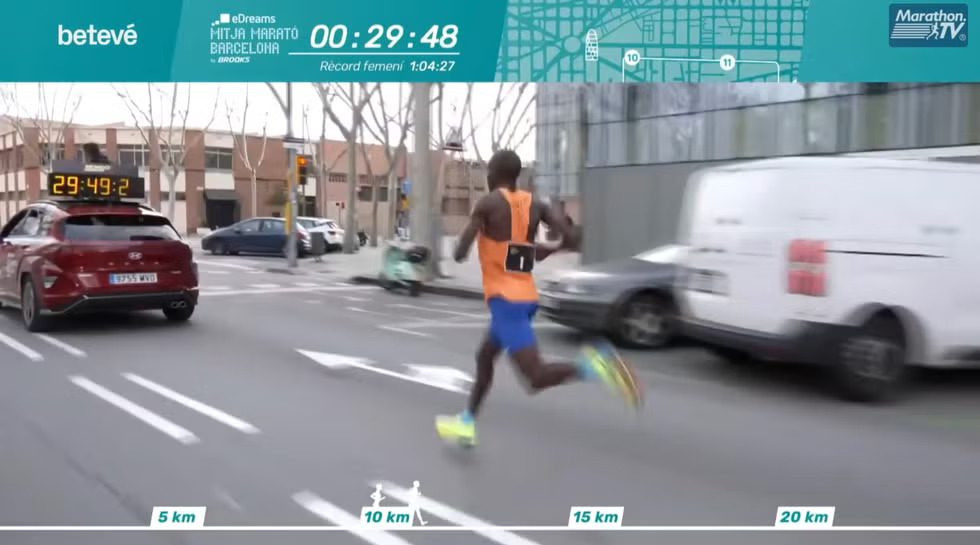 В Барселоне он преодолел дистанцию за 56 минут и 42 секунды, что было на 48 секунд лучше предыдущего рекордного показателя.