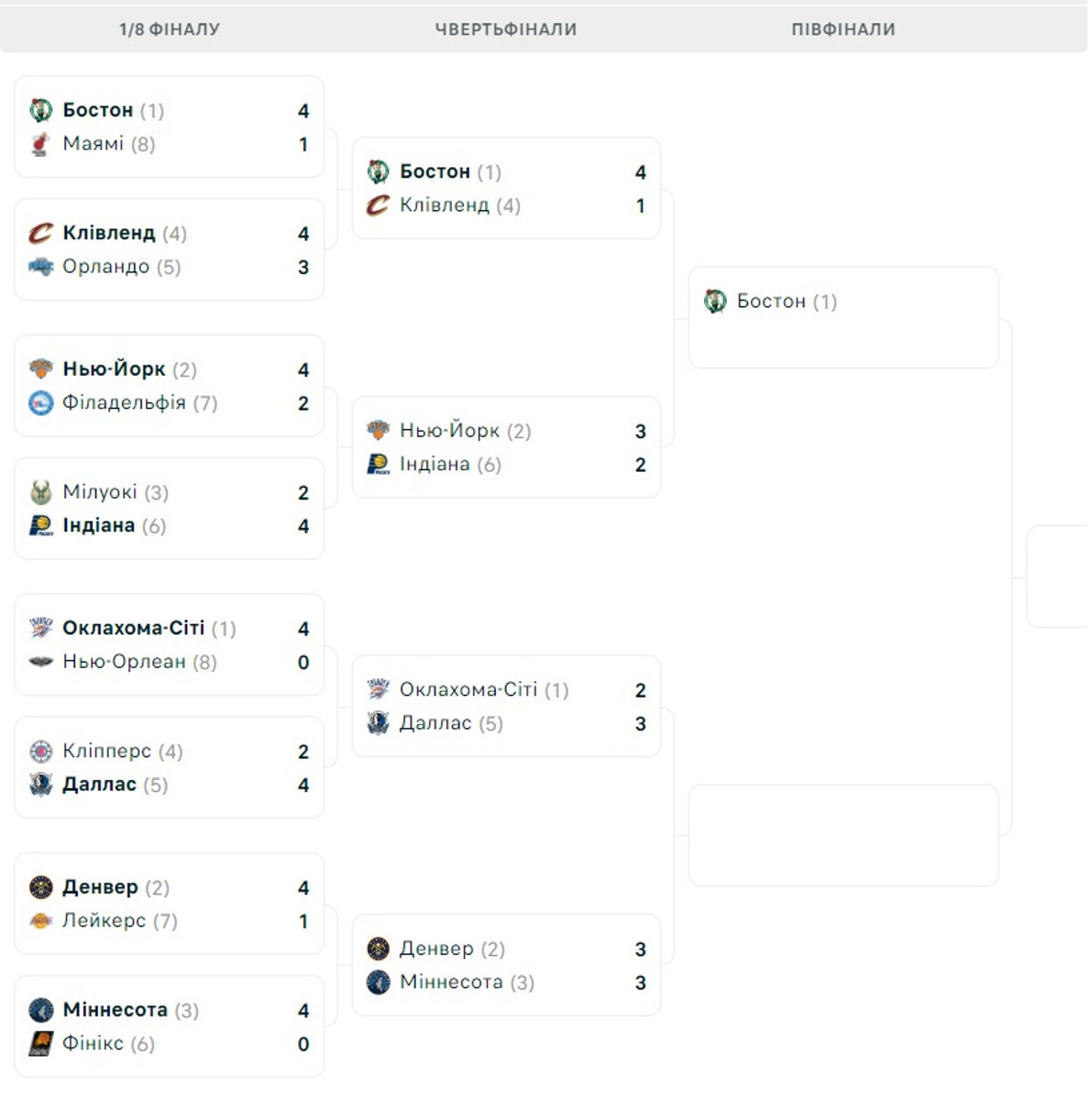 Накануне Бостон Святослава Михайлюка одолел Кливленд и вышел в финал конференции, а Даллас победил Оклахому.