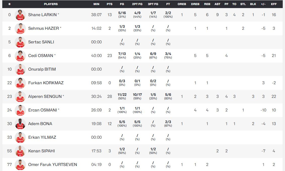 Впрочем, вторая четверть прошла полностью под контролем турок. Они сумели выиграть половину с "+6". Особенно не шла игра у лидера немцев Денниса Шредера, который набрал всего 2 очка.