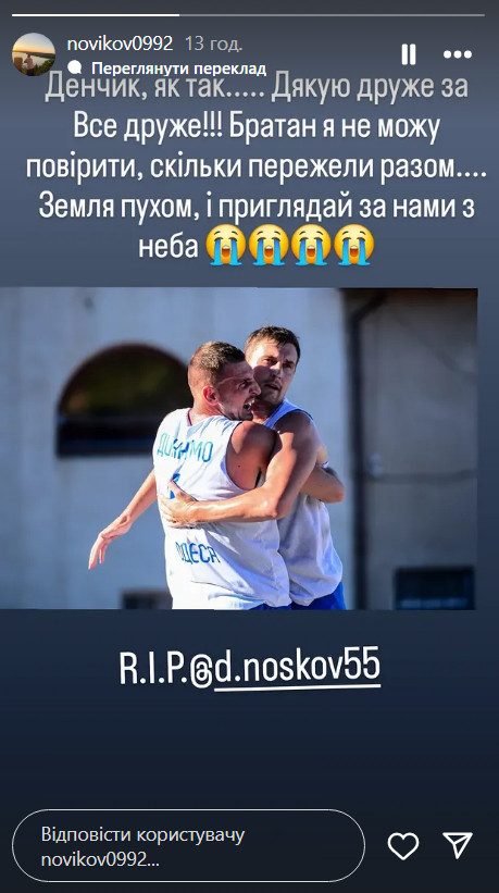 "Денчик, как так..... Спасибо друг за все друг!!! Братан, я не могу поверить, сколько пережели вместе.... Земля пухом, и присматривай за нами с неба", – написал Новиков.