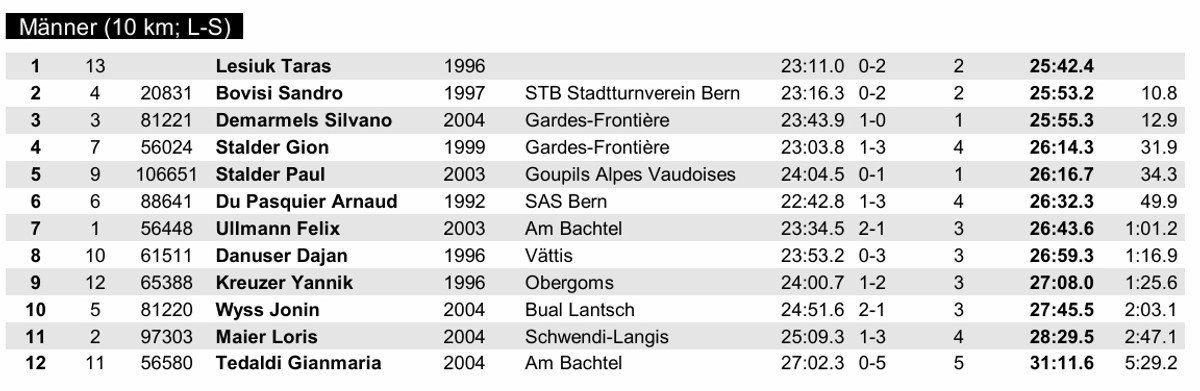 Несмотря на два промаха на стрельбе стоя, 29-летний украинец финишировал с лучшим временем, опередив Сандро Бовизи, который стал вторым, на 10,8 секунды.