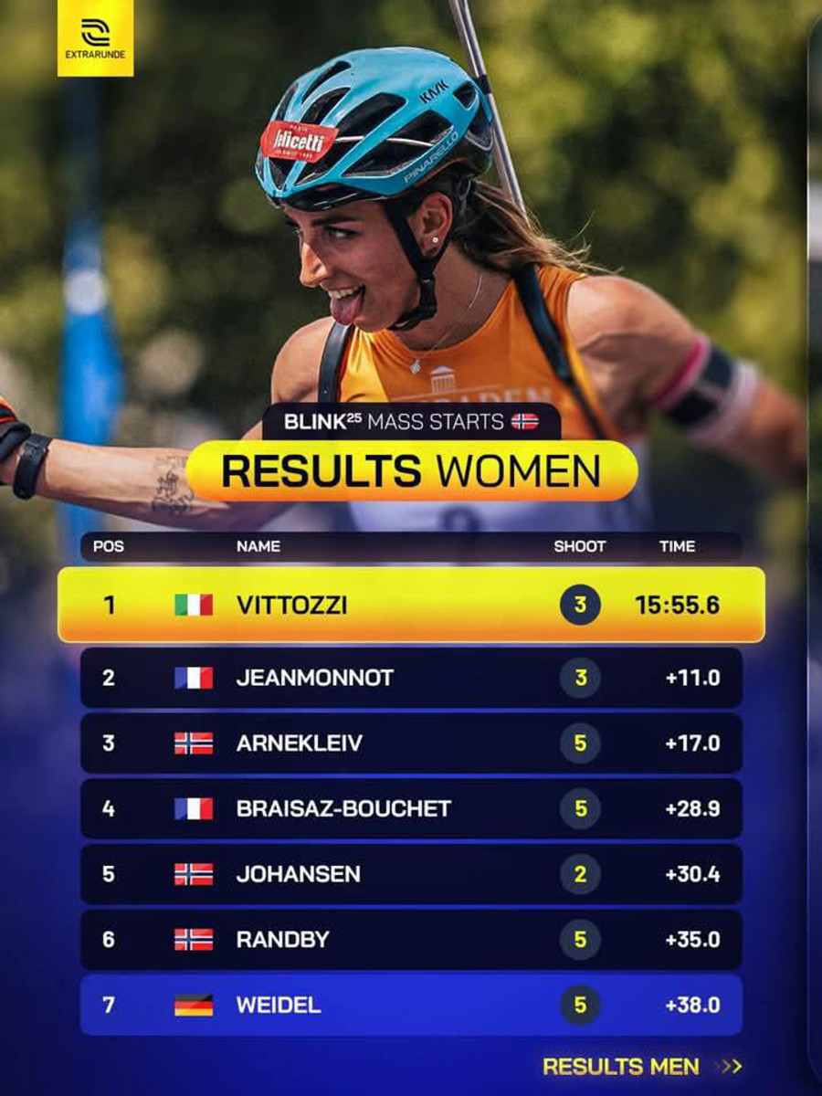 Примечательно, что накануне в суперспринте победила Лу Жанмонно, Виттоцци имела серебро, Арнеклейв – так же была третьей. Причем француженка опередила итальянку на каких-то 0,8 секунды.
