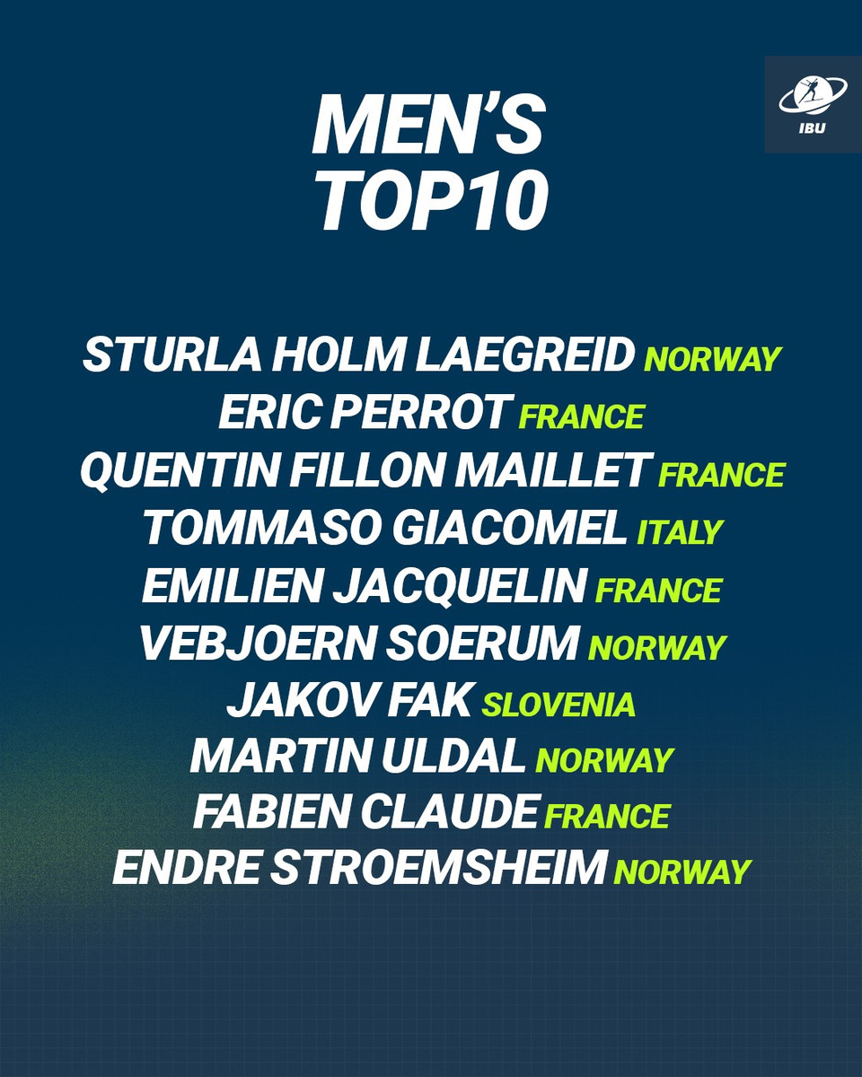Накануне также стала известной первая десятка участниц женской гонки. 60 лучших биатлонистов и биатлонисток будут соревноваться в суперспринте.