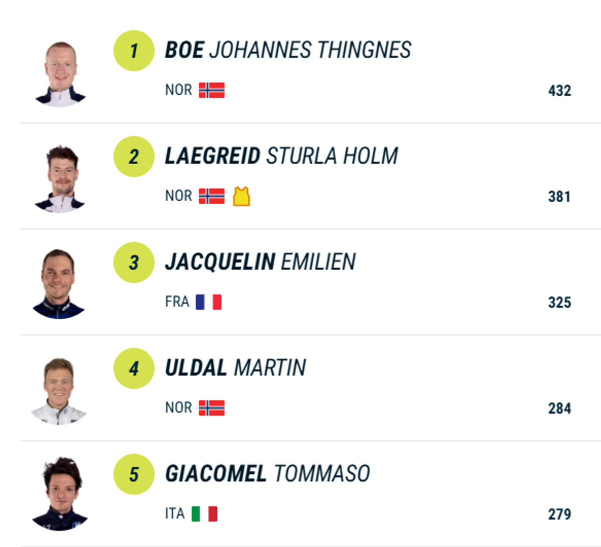 По итогам гонки в Холменколлене Жаклена в зачете спринтов обошел другой норвежец, Стурла Легрейд.