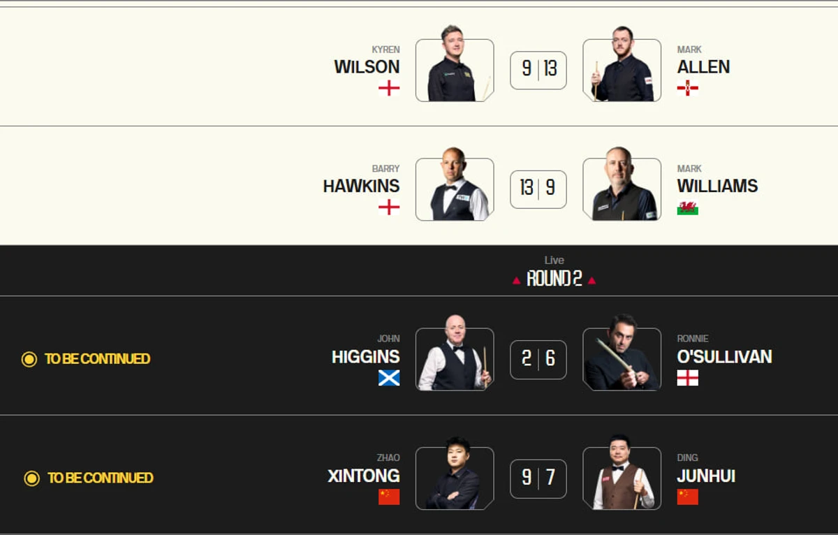 В дневной сессии Марк Аллен удержал свое преимущество над Кайреном Уилсоном. Чемпион мира 2024-го уступил со счетом 9-13.