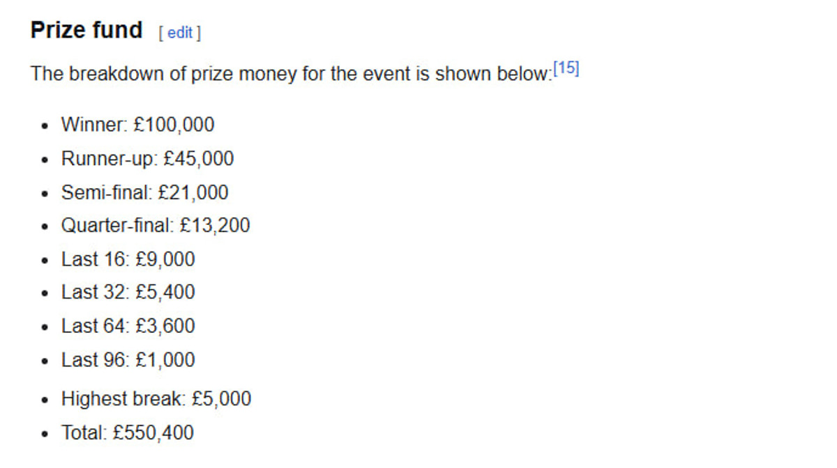 Победитель получит £100 000, что делает титул не только престижным, но и максимально желанным с материальной точки зрения. Финалист и участники поздних стадий также получают внушительные выплаты – для многих игроков именно такие турниры помогают стабильно держаться в профессиональном туре.