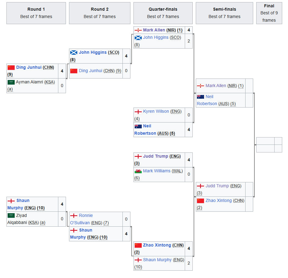 Трамп на кураже, Аллен и Синьтун прошли ветеранов: определились полуфиналисты Snooker Championship