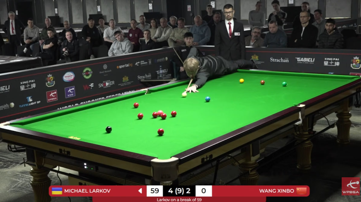 Следующий фрейм остался за Синьбо, но затем Ларков начал брейком на 60 очков. После этого китаец сделал фол и преимущество составляло 64 очка.