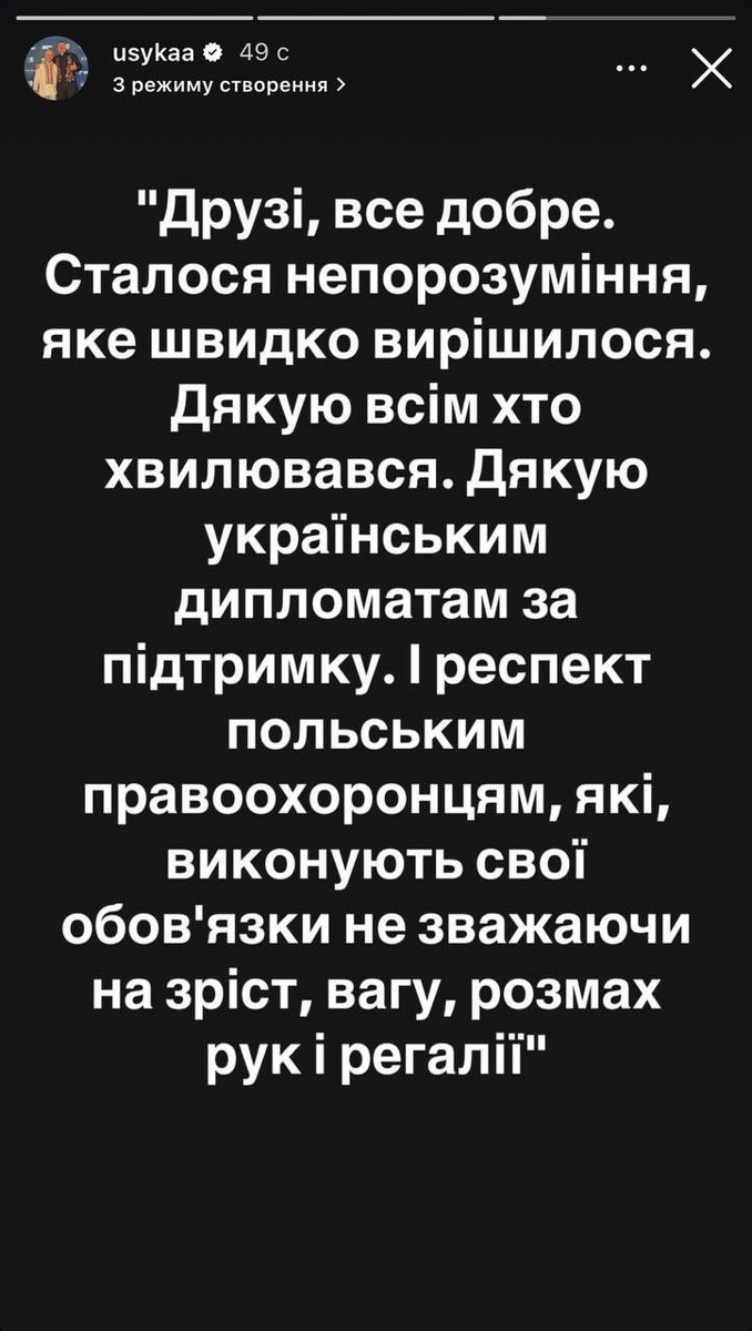 "Друзья, все хорошо. Случилось быстрое разрешение недоразумения. Спасибо всем, кто волновался. Спасибо украинским дипломатам за поддержку. И респект польским правоохранителям, которые выполняют свои обязанности несмотря на рост, вес, размах движение и регалии", – отметил Усик.