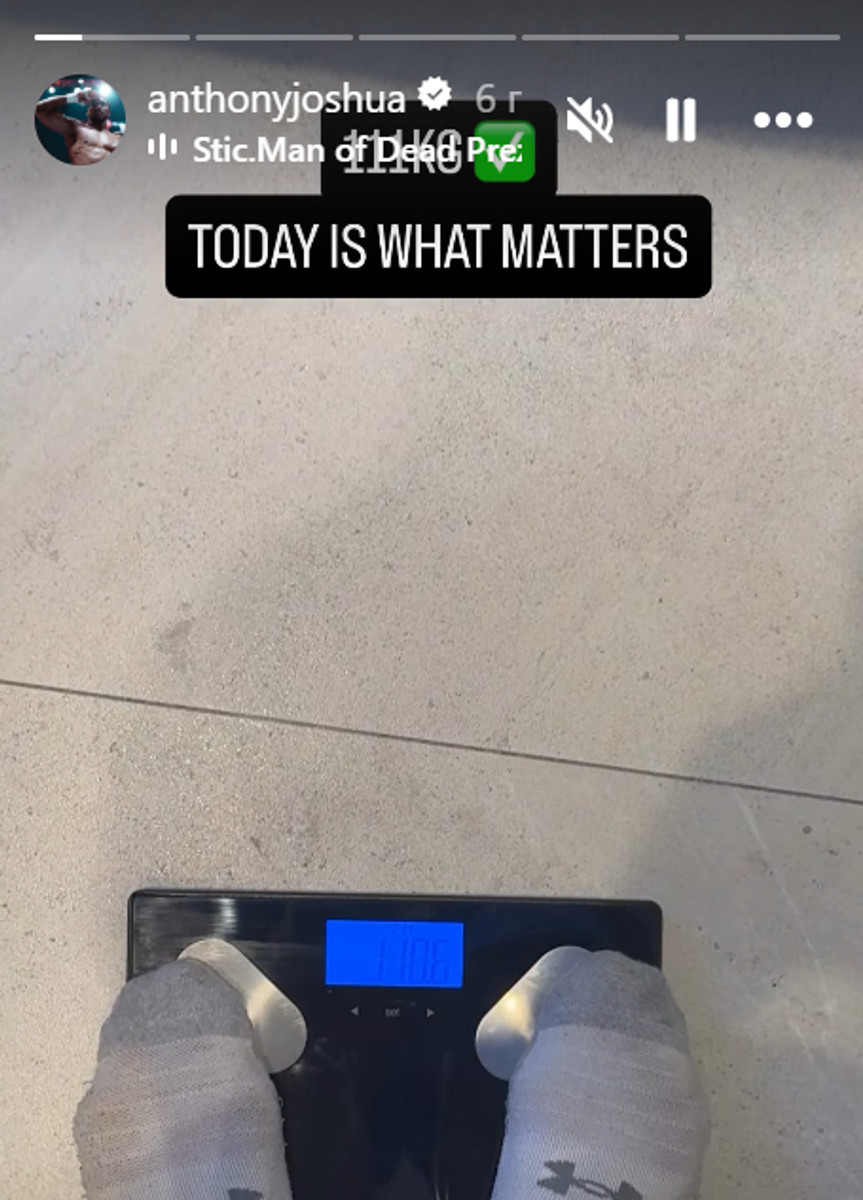 Экс-чемпион мира в супертяжелом весе Энтони Джошуа (28-4, 25 KO) показал свой вес перед поединком с боксером тяжелого веса и блогером Джейком Полом (12-1, 7 KO).