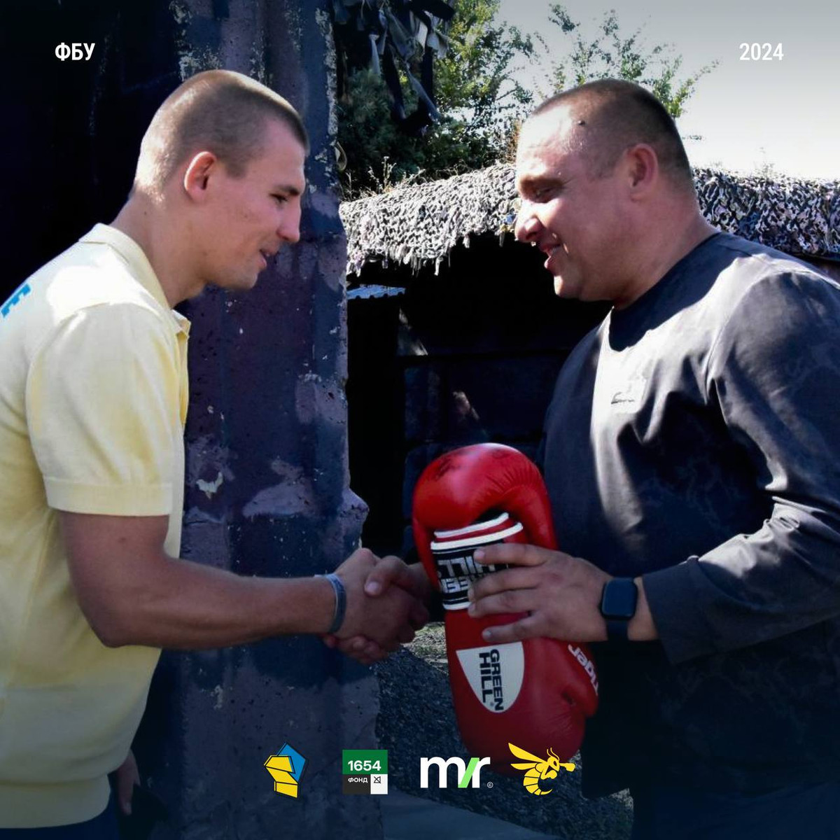 Александр Хижняк в очередной раз поблагодарил ВСУ за их ежедневные подвиги, за то, что они совершают ради нашей победы, а также подписал боксерские перчатки, которые подарил командиру бригады Вячеславу Краснопольскому", — говорится в прессрелизе ФБУ.