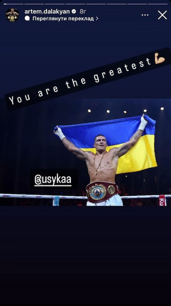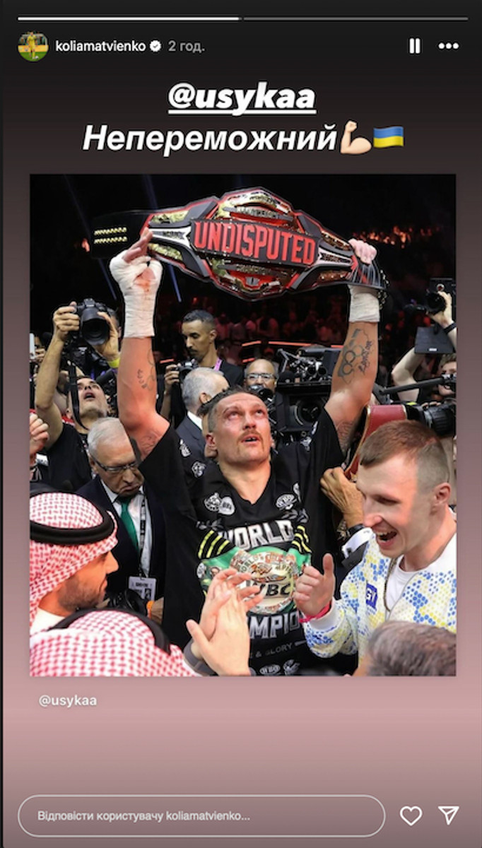 "Такой непростой бой! Такая важная победа для Александра, для Украины!" Спасибо, Усик. Абсолютный чемпион! Слава Украине!"