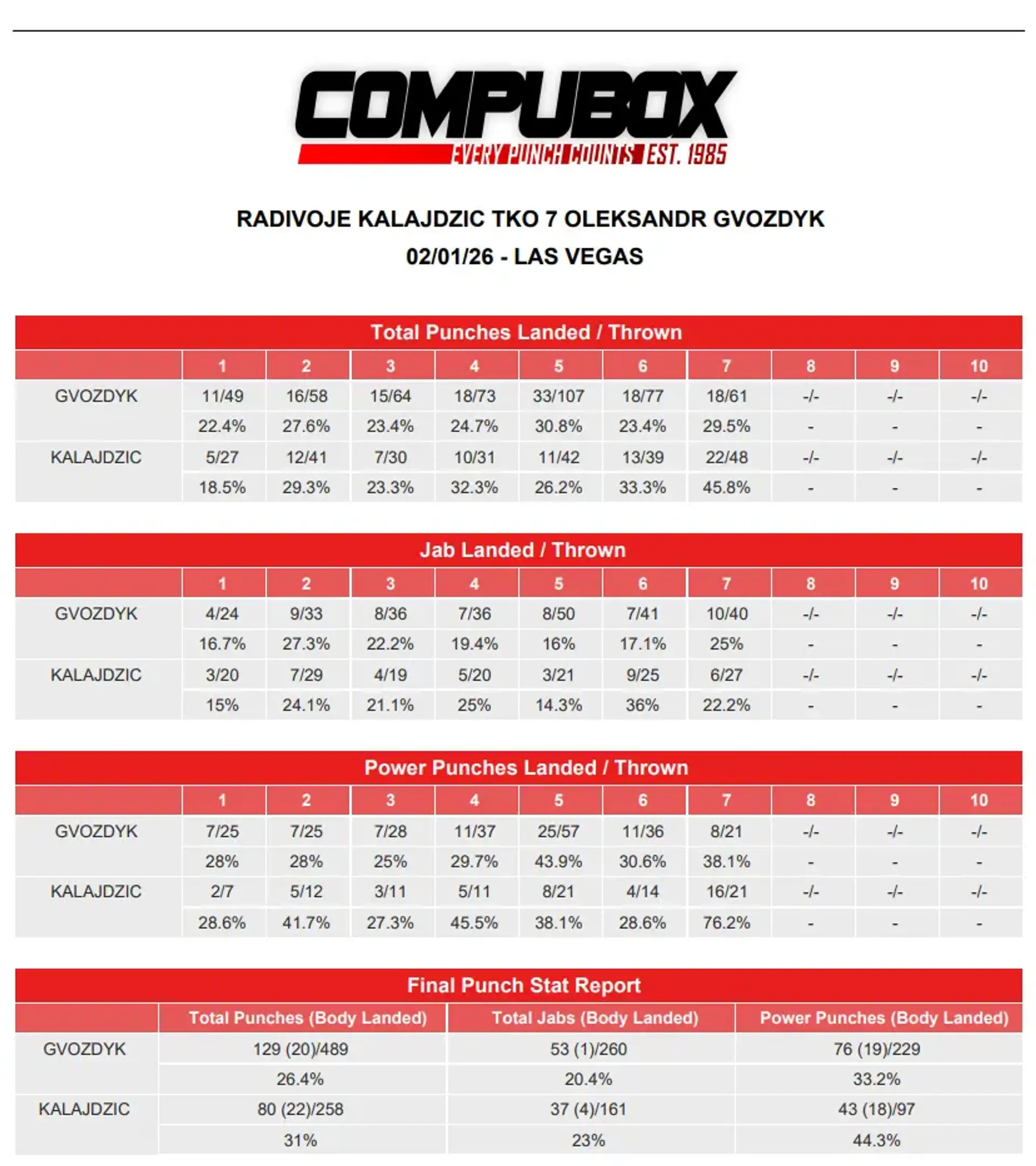 Статистику боя Гвоздик – Калайджич опубликовал сайт Compubox.