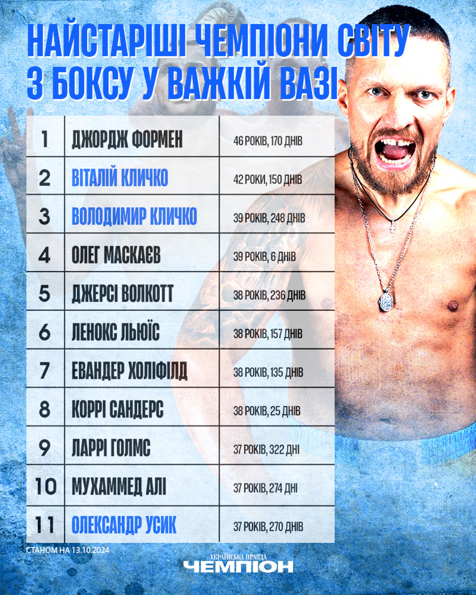 В ближайшие дни, а именно 18 октября, чемпион мира по боксу в тяжелом весе по версиям WBC, WBA и WBO Александр Усик войдет в 10 старейших чемпионов мира.