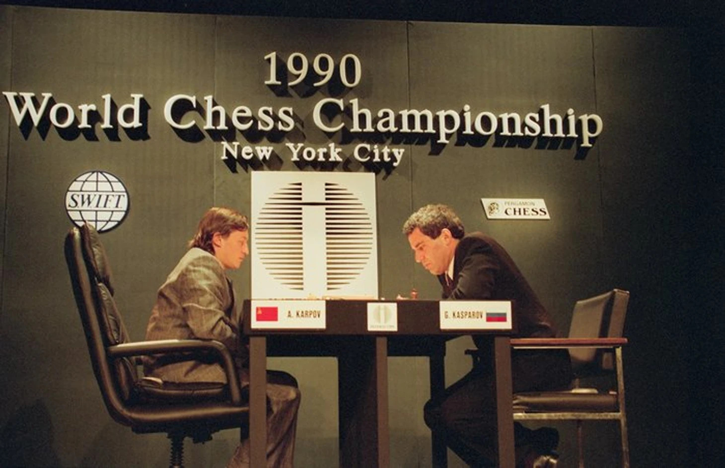 В 1987 году Гарри Каспаров защищал титул чемпиона мира против любимца партии и одного из героев современной российской пропаганды Анатолия Карпова.