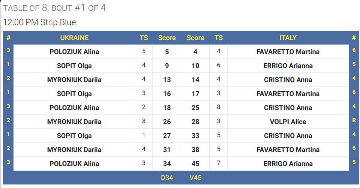 Сегодня, 28 июля, в Тбилиси (Грузия) состоялся четвертьфинальный поединок между украинскими и итальянскими рапиристками.