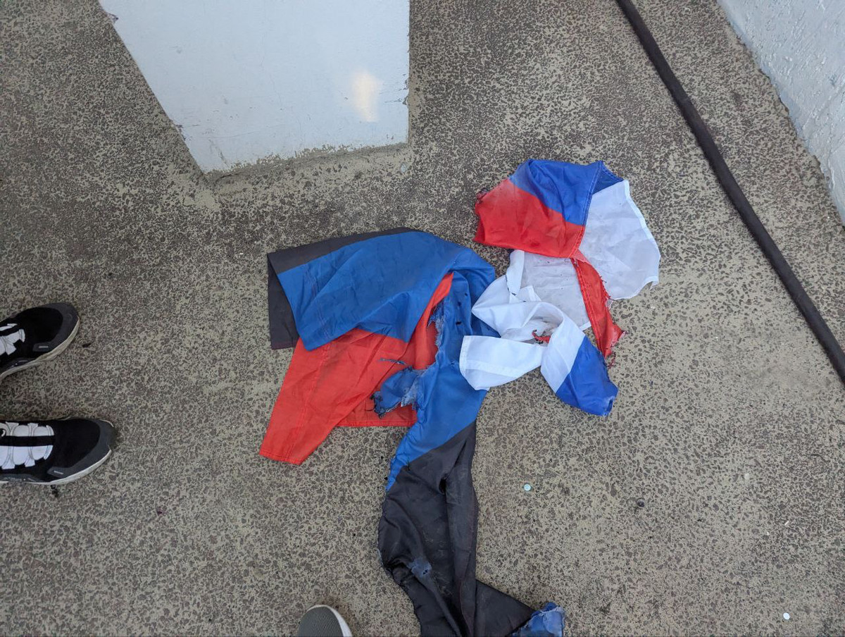 Этот момент вызвал настоящий взрыв эмоций. Все происходило на фоне скандирований, песен о Путине и украинских флагов.