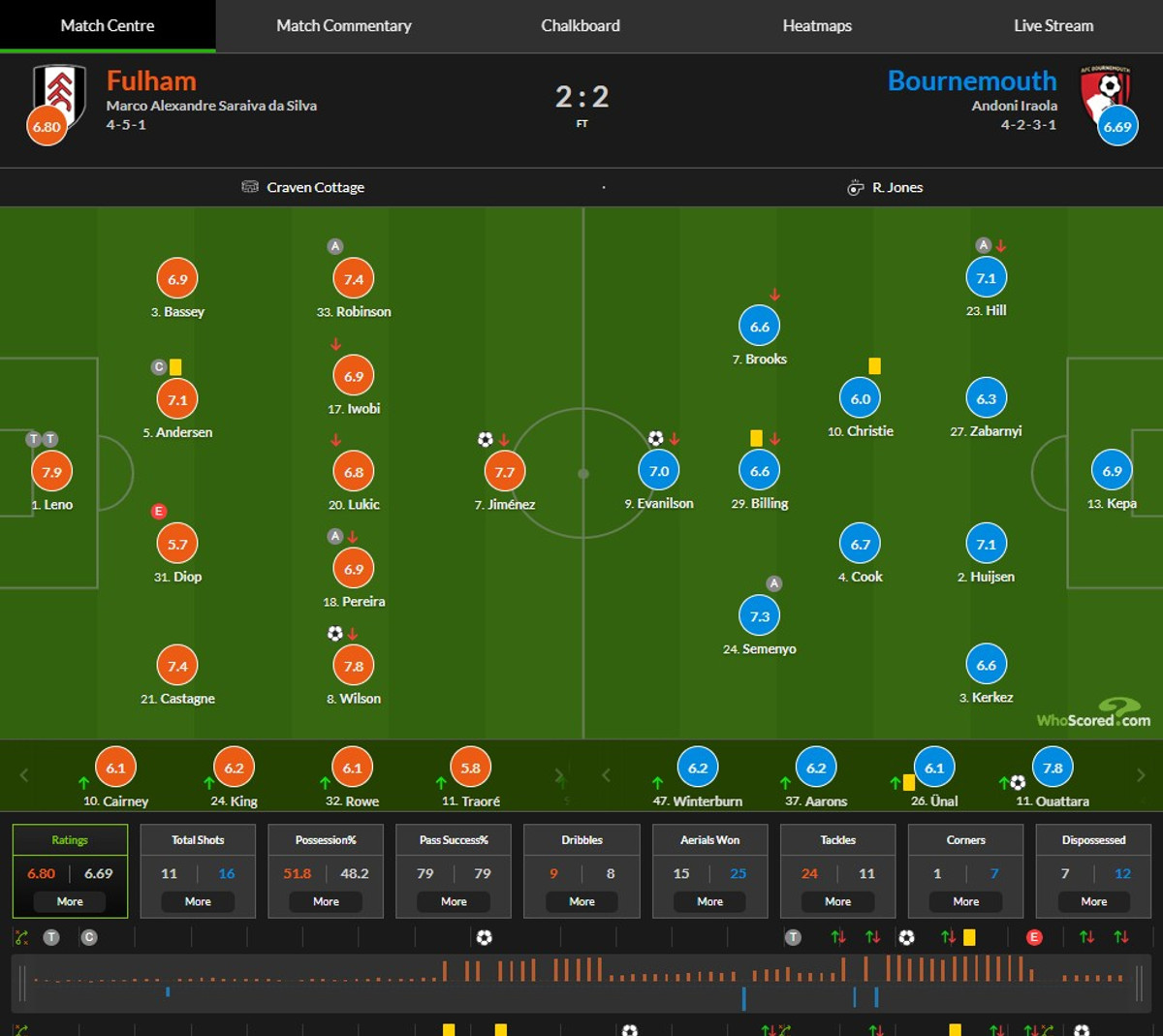 Борнмут спасся во встрече с Фулхэмом, а Эвертон проиграл Ноттингему, поднявшемуся на второе место турнирной таблице.