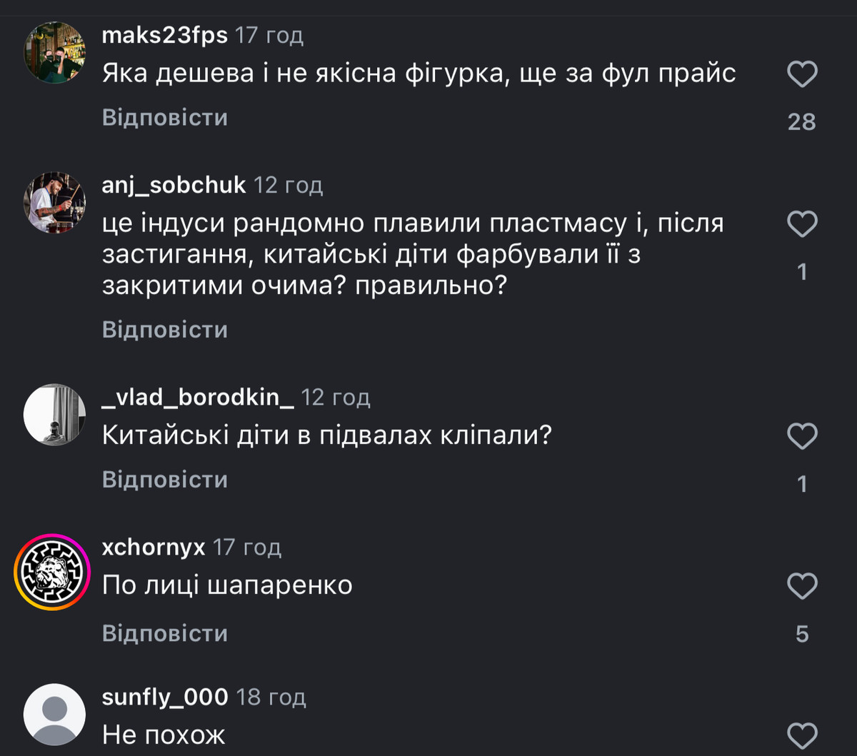 Особое раздражение вызвала цена – 1500 гривен за фигурку высотой около 10 сантиметров. В соцсетях шутят, что это "10 см пластика за космическую стоимость".