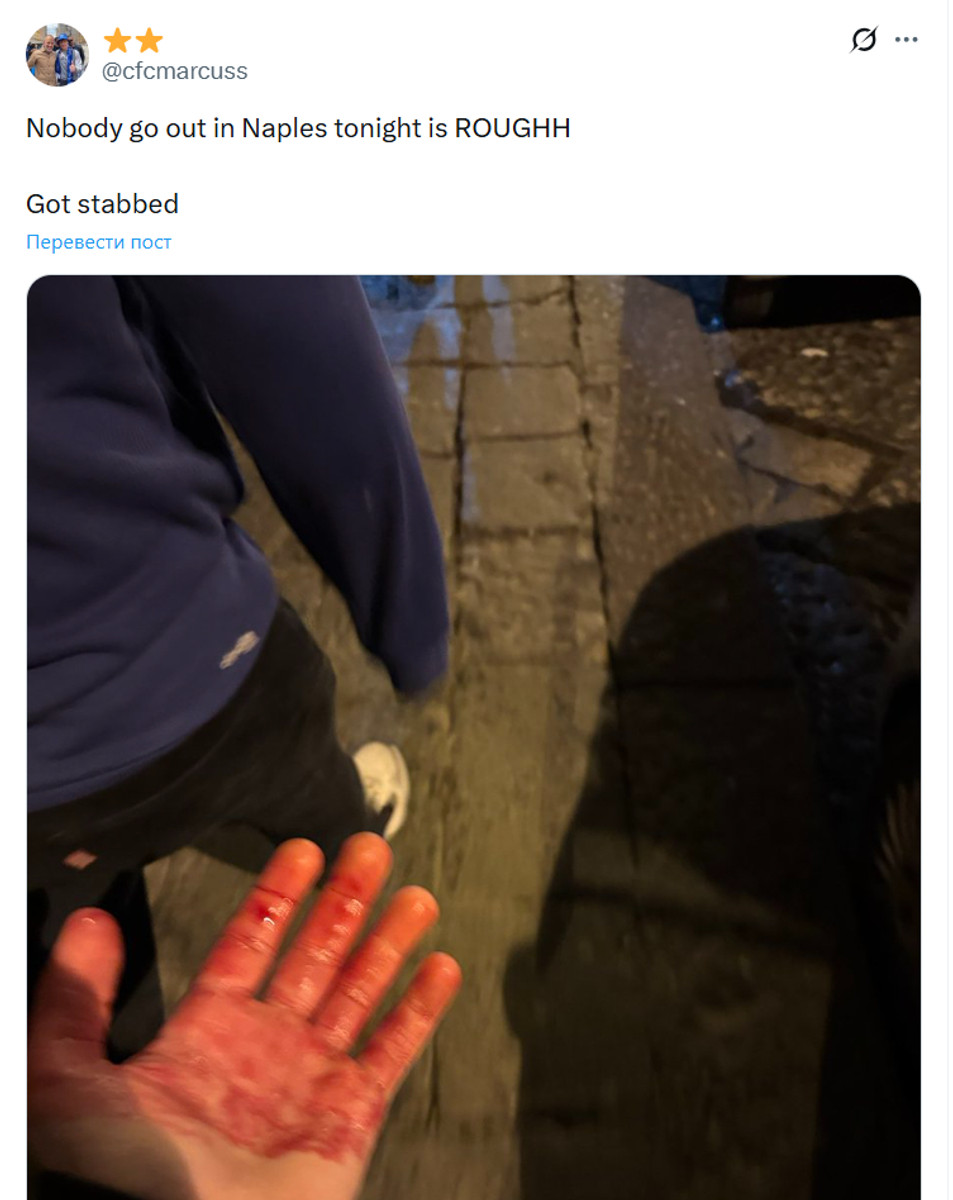 Есть ножевое ранение: двое болельщиков Челси попали в больницу в Неаполе
