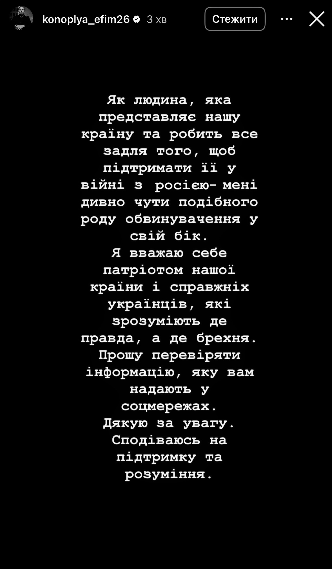 "Как человек, который представляет нашу страну и делает все для того, чтобы поддержать ее в войне с россией – мне странно слышать подобного рода обвинения в свою сторону. Я считаю себя патриотом нашей страны и настоящих украинцев, которые поймут где правда, а где ложь.