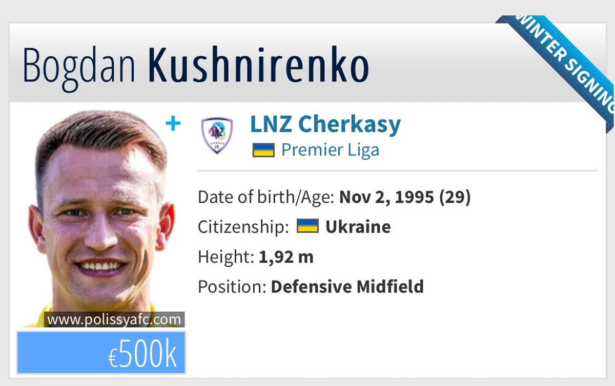 О сроках соглашения ничего не сообщается, однако Кушниренко уже зарегистрирован на портале в качестве футболиста черкасского клуба. Трансферная стоимость игрока оценивается в 500 тыс евро.