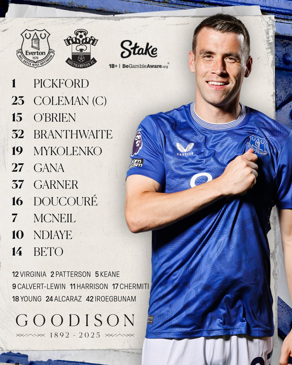 Эвертон: Пикфорд, Миколенко, Брентуэйт, О'Брайен, Коулмен, Гейе, Гарнер, Макнил, Дукуре, Ндиайе, Бето