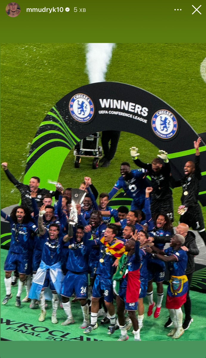 Поддержал команду: Мудрик опубликовал фрагмент празднования победы Челси в Лиге конференций