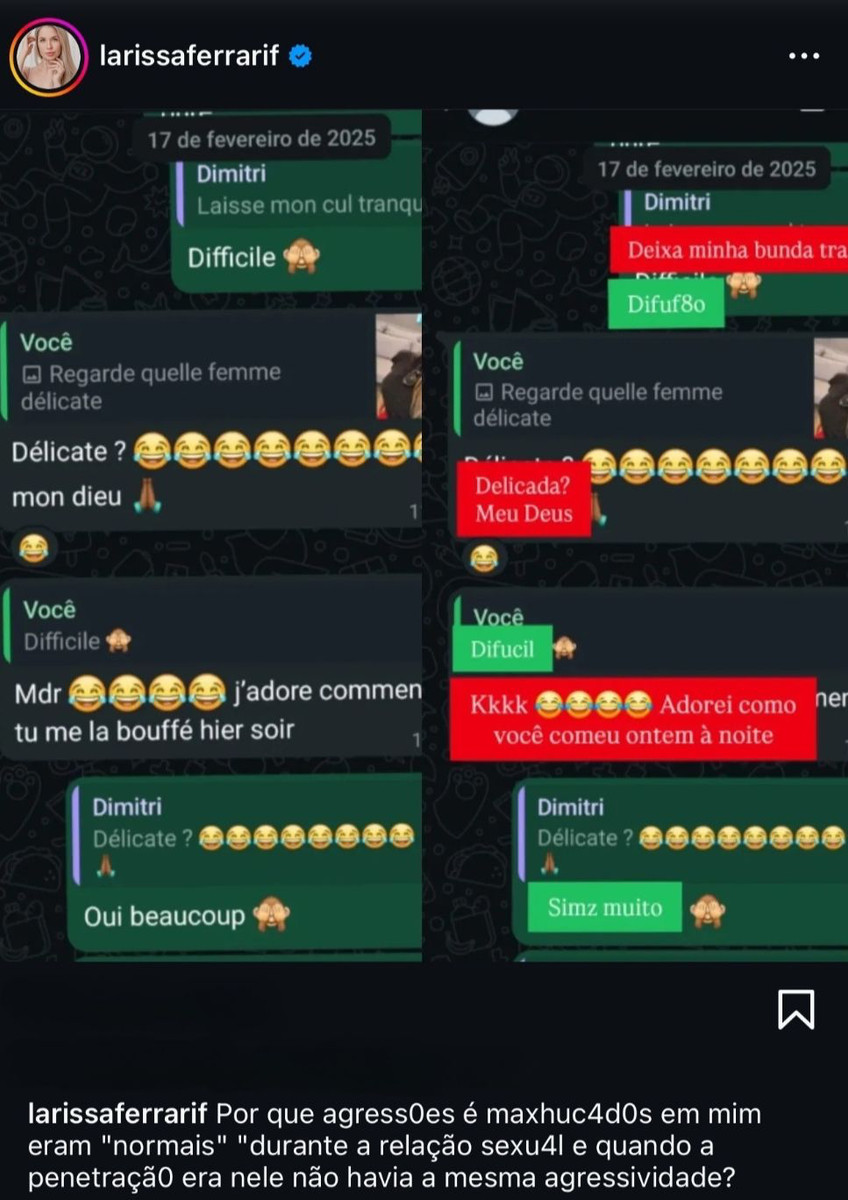 Ларисса Феррари в интервью Divulgação рассказала интересные подробности интимной жизни футболиста, доказав свои слова прикрепленной перепиской.