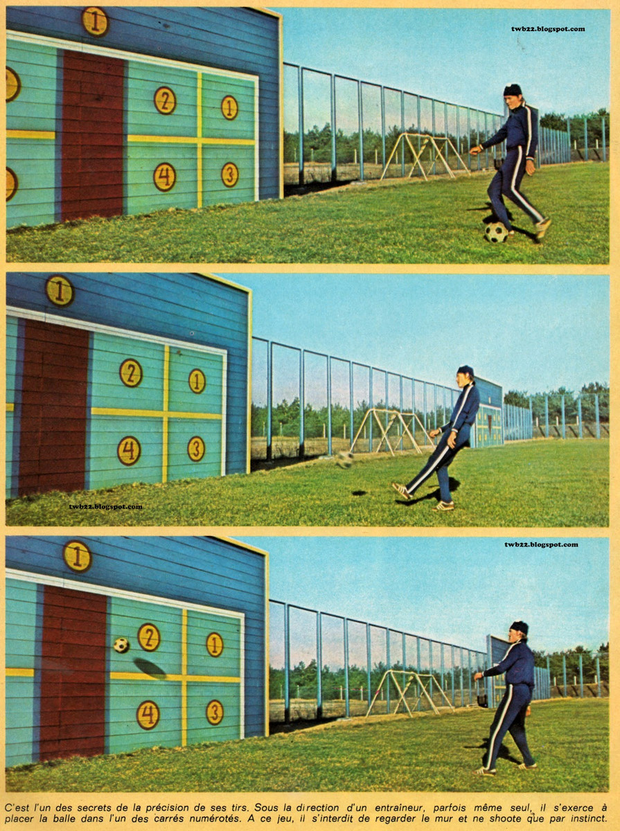 Природная молниеносность нападающего требовала соответствующего технического арсенала. 23-летний Блохин – на тот момент уже страшный сон для любого из защитников – признал, что старается не останавливаться на пути совершенствования. В качестве примера привел одно из упражнений динамовских тренировок: игрок располагается против щита с нарисованными воротами, разделенными на пронумерованные сектора, тренеры выкрикивают цифру – и именно туда надо попасть мячом.