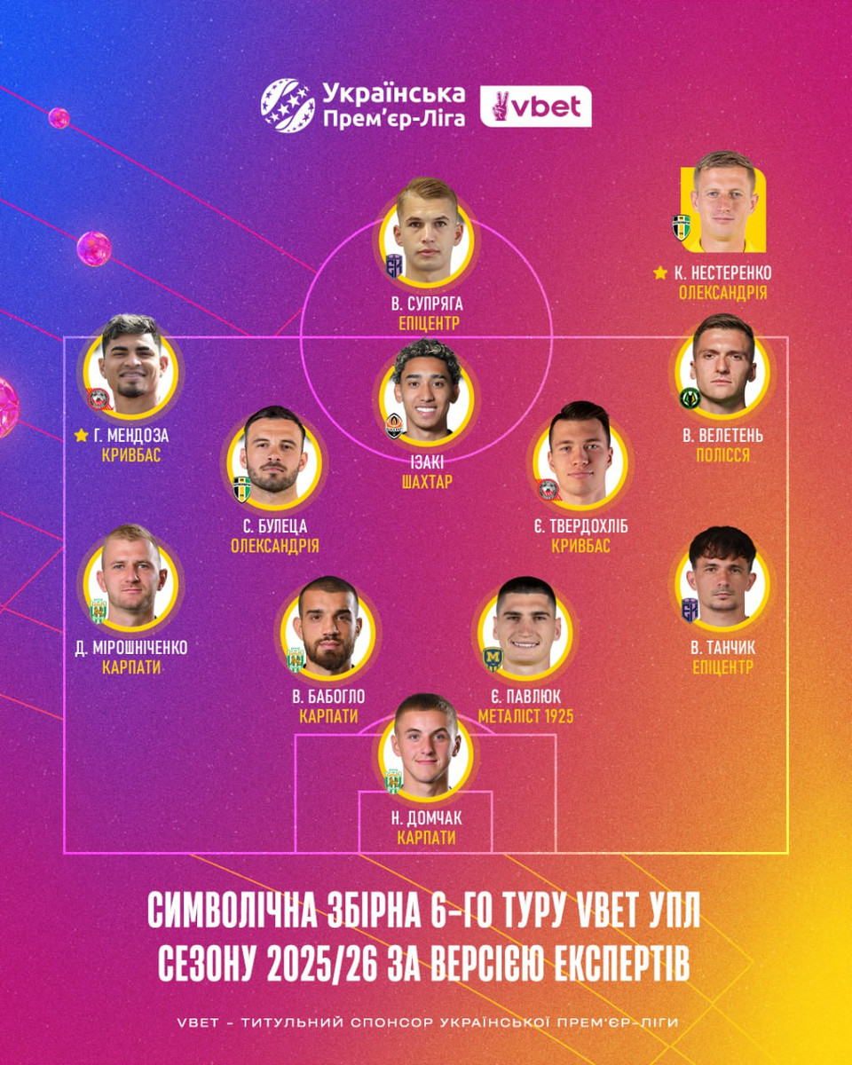 Супряга попал в символическую сборную УПЛ, Нестеренко – лучший тренер 6-го тура