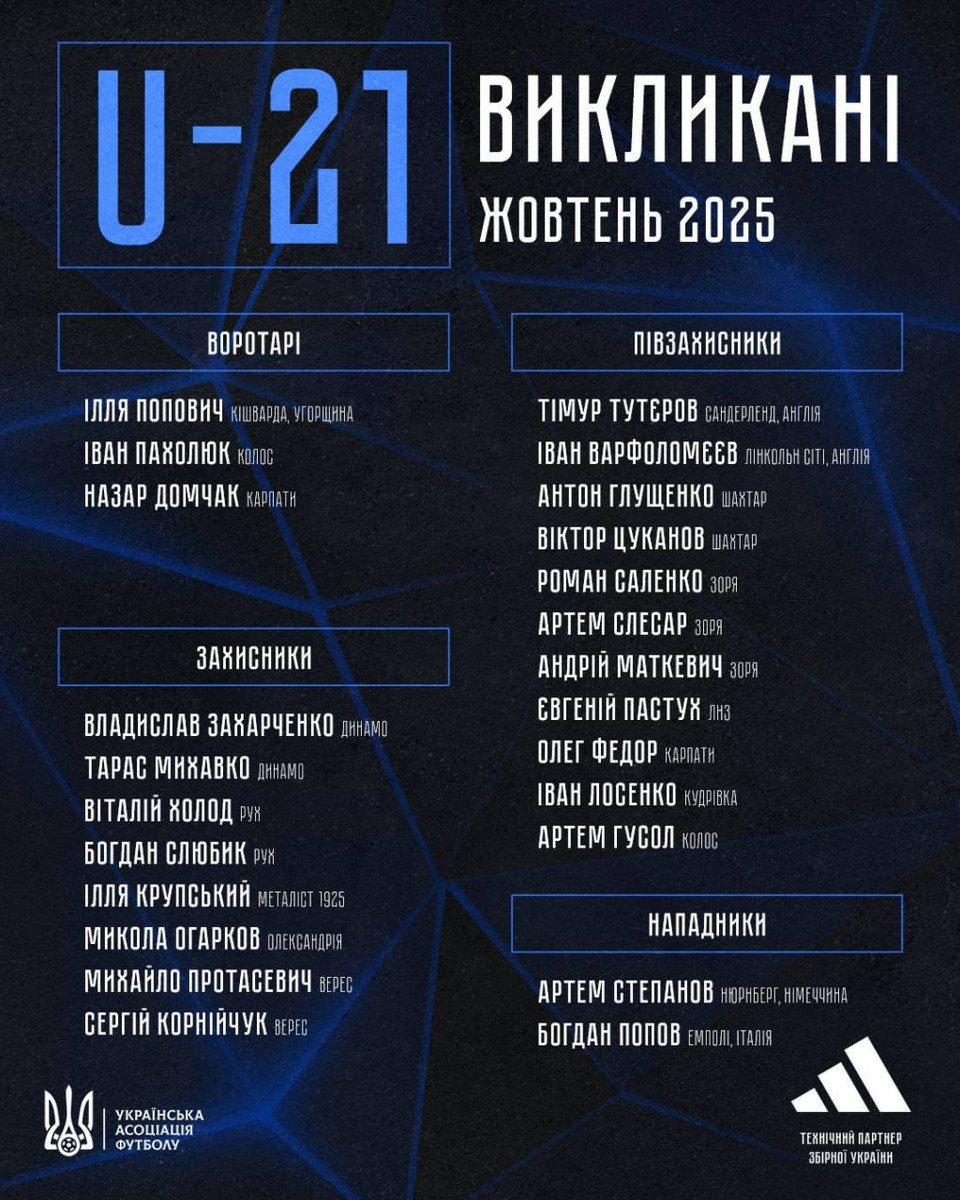 В этом месяце украинскую молодежку ожидают два поединка против Венгрии (10 октября) и Хорватии (14 октября) в рамках квалификации Евро-2027. На эти матчи Мельгоса вызвал 24 футболистов.
