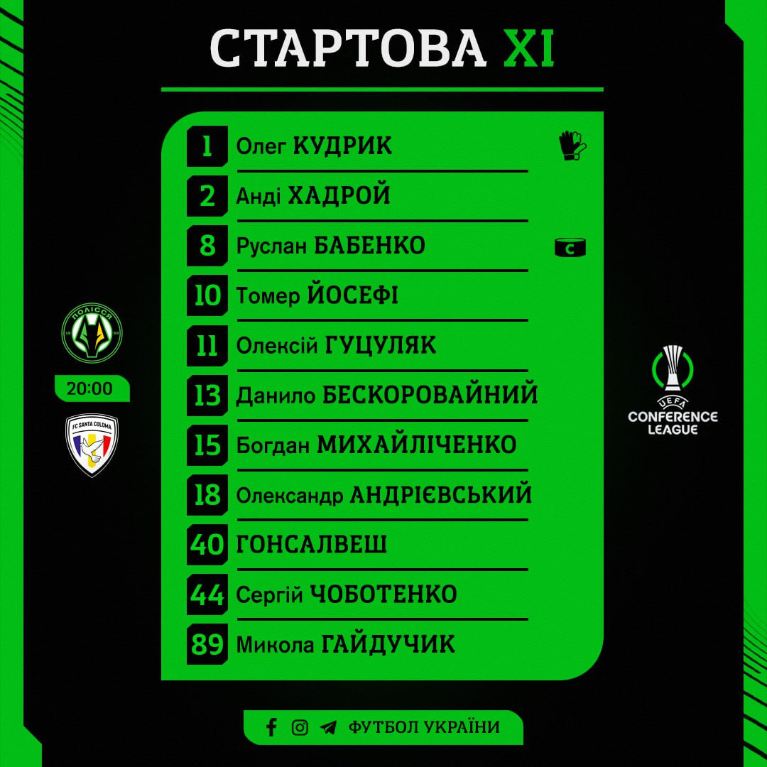 Полесье: Кудрик, Хадрой, Бабенко, Йосефи, Гуцуляк, Бескоровайный, Михайличенко, Андриевский, Гонсалвеш, Чоботенко, Гайдучик