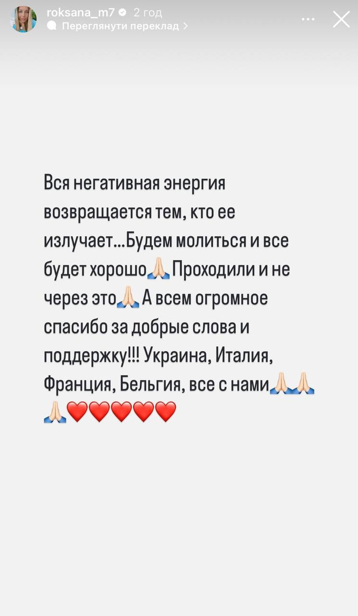 Роксана Малиновский, жена Руслана Малиновского, считает, что вся негативная энергия вернется к тем, кто ее излучает.