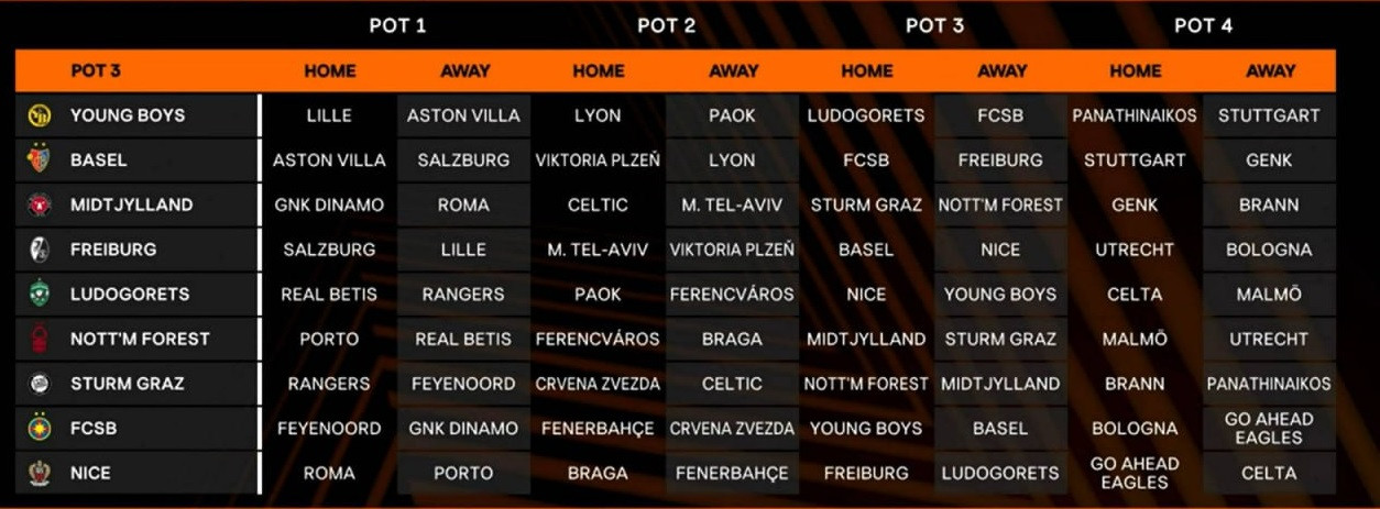 Напомним, что в Лиге Европы 36 команд, которые пробились в этап лиги во время жеребьевки основного раунда были размещены в 4 корзины, в соответствии с клубным коэффициентом УЕФА. Каждая команда сыграет с двумя участниками из каждой корзины. Украинские клубы в Лигу Европы в этом сезоне не отобрались.