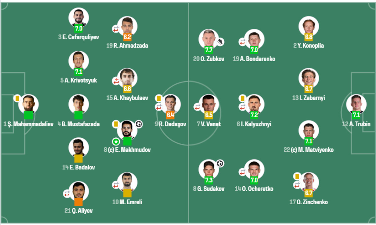 Лучшим игроком матча был признан Эмин Махмудов - 7,7 балла, в активе которого реализованный пенальти.