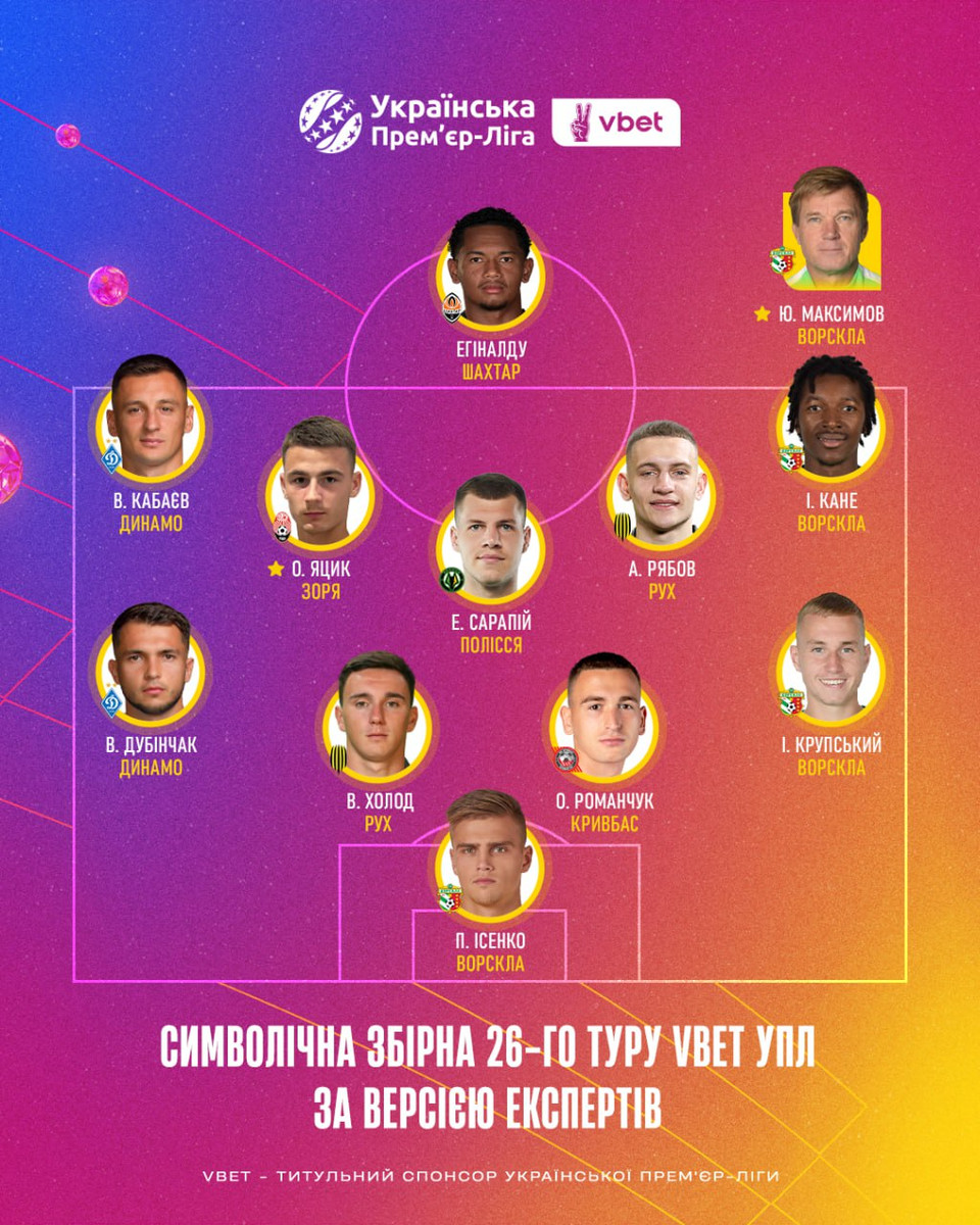 УПЛ объявила символическую сборную и назвала лучших тренера и игрока 26 тура