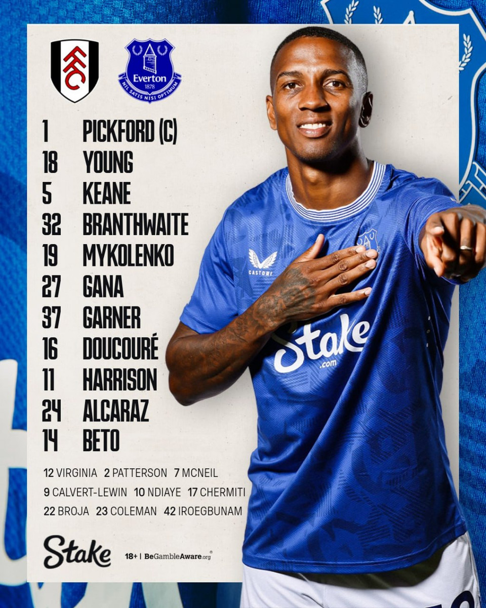 Состав Эвертона: Пикфорд, Янг, Кин, Брентуэйт, Миколенко, Гана, Гарнер, Дукуре, Харрисон, Алькарас, Бето