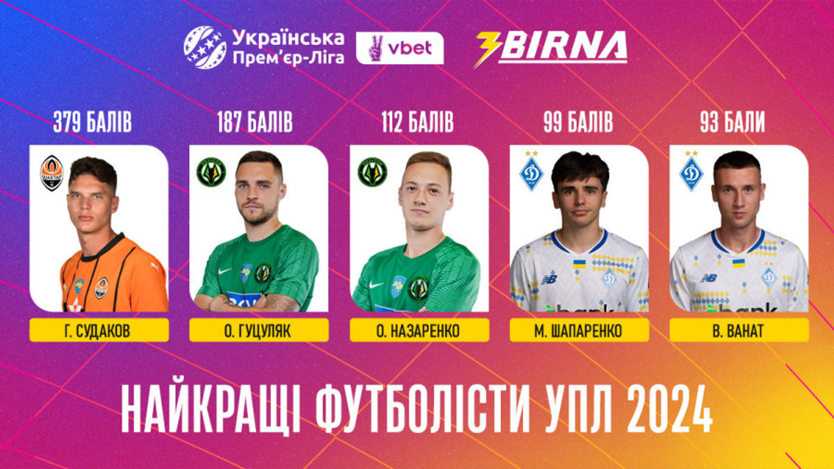 Лучшим футболистом Украинской Премьер-лиги в 2024 году по опросу футболистов и главных тренеров клубов УПЛ (от каждого клуба голосовали 15 игроков и тренер) признан полузащитник Шахтера Георгий Судакрв.