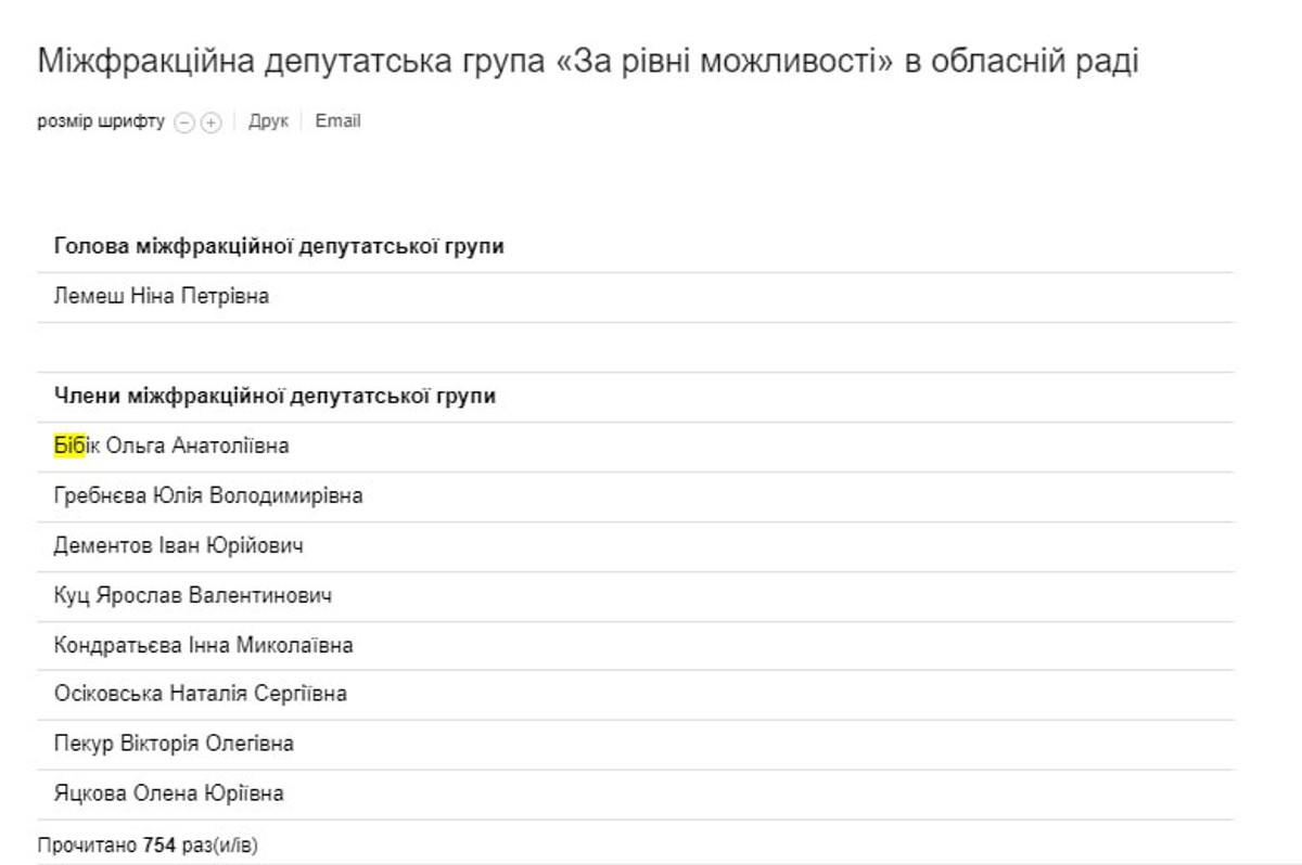 Последний раз на сайте местного органа самоуправления она упоминается 16 декабря прошлого года. Ее должность – председатель постоянной комиссии областного совета по вопросам семьи, молодежи, спорта и туризма.