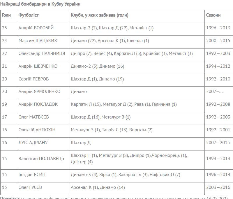 Реестр лучших кубковых бомбардиров много лет возглавляет Андрей Воробей – 25 голов.