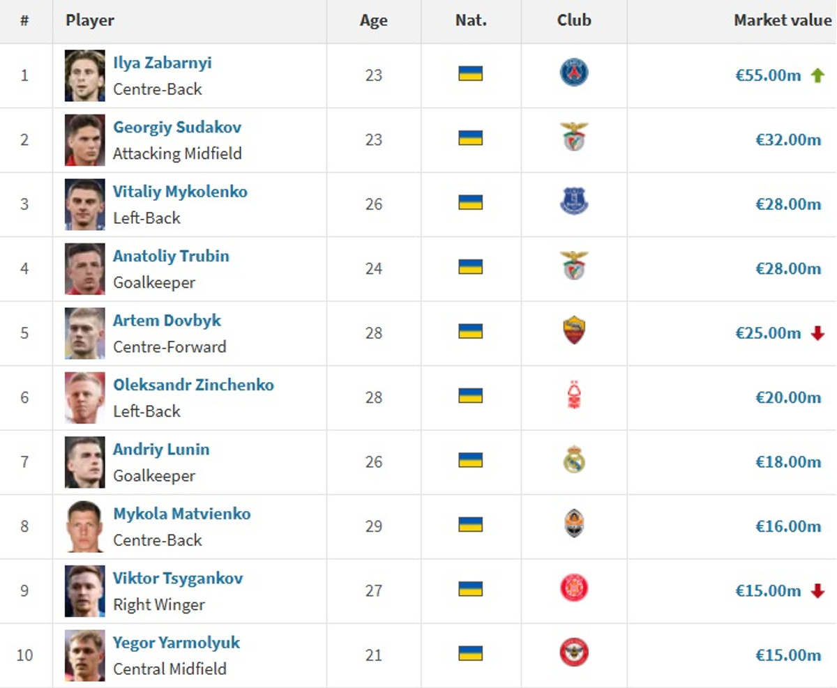 Топ-10 самых дорогих украинских футболистов по версии Transfermarkt