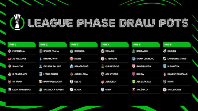 В то же время в Лиге конференций 36 коллективов во время жеребьевки этапа лиги будут размещены в 6 корзин, в соответствии с клубным коэффициентом УЕФА. Каждая команда сыграет с одним участником из каждой корзины.