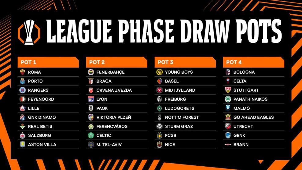 Напомним, что в Лиге Европы 36 команд, которые пробились в этап лиги во время жеребьевки этапа лиги будут размещены в 4 корзины, в соответствии с клубным коэффициентом УЕФА. Каждая команда сыграет с двумя участниками из каждой корзины.