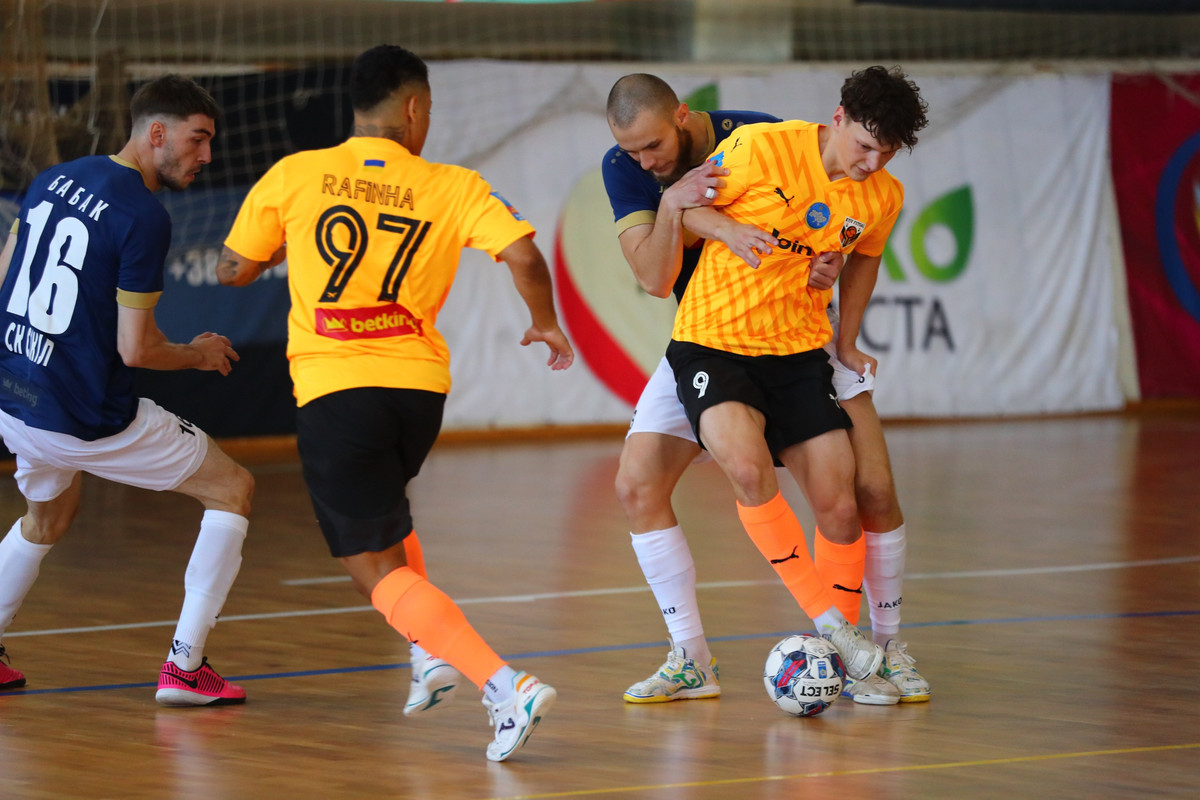 Впрочем, это не помешало командам Романа Ковальчика и Тараса Шпички начать игру на бешеных скоростях и выдержать их до финальной сирены. Поражала и интенсивность ведения игры, когда игроки не давали друг другу свободно дышать, ставя соперников перед необходимостью принимать решения в условиях цейтнота. Это приводило время от времени к индивидуальным ошибкам, которыми обе команды пользовались. В итоге эта игра стала самой результативной в туре, и это при том, что в воротах Kyiv Futsal был Юрий Савенко, голкипер национальной сборной Украины, а у Сокола - Сергей Шевченко, который уже успел зарекомендовать себя искусным мастером вратарского дела.