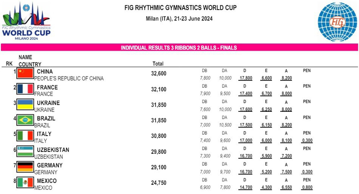 Результаты финала с 3 лентами и 2 мячами.