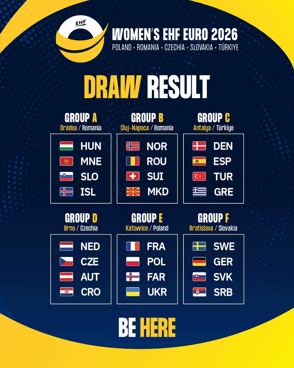 В четверг, 16 апреля, состоялась жеребьевка предварительного раунда женского чемпионата Европы по гандболу 2026 года.