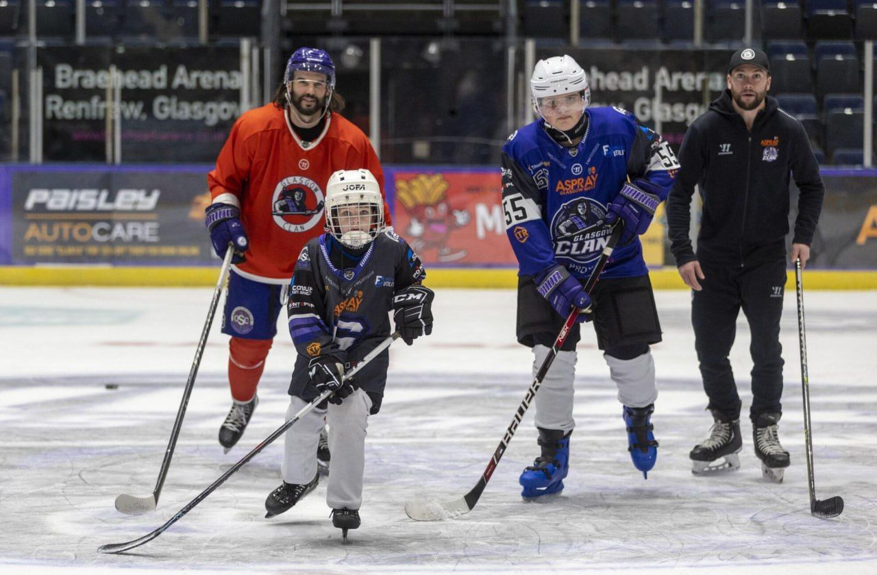 Отдельная история – это тренировка на Braehead Arena с Glasgow Clan двух юных украинских хоккеистов – Сергея Тимошенко из Киева и Даниила из Кременчуга. Ребятам было 14 и 9 лет на тот момент. Они жили со своими семьями, как и сотни других украинских беженцев, на корабле MS Ambition, который стоял на якоре в доках короля Георга V на реке Клайд.